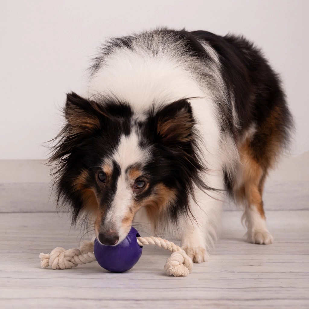 Resistente, duradera y apta para congelar, este juguete también es rellenable con comida gracias a su núcleo hueco. Mantendrá a tu perro entretenido y activo, estimulando su olfato y gusto mientras resuelve el desafío de obtener su alimento. Además, al estar fabricada con caucho natural, es flexible y rebota: la pelota perfecta para morder y perseguir.